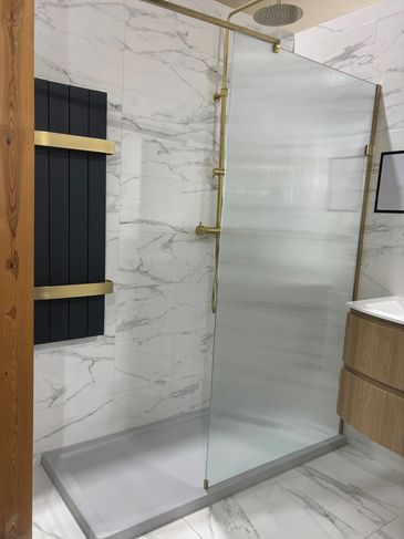 Roman Liberty Wet Room Fluted Glass Corner Panel In Brushed Brass 1057mm